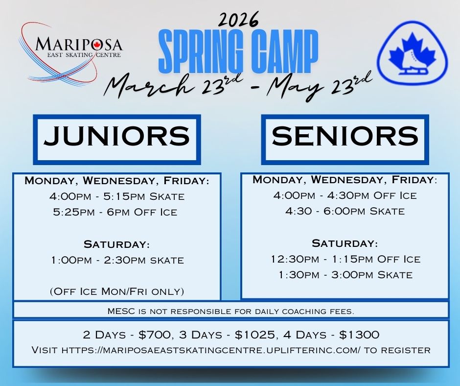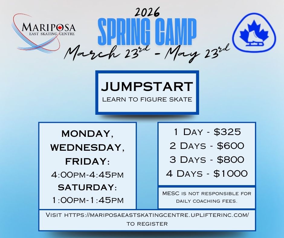 Some dream of reaching an Olympic figure skating podium, or enhancing skating skills for hockey, ringette or speed skating. Whatever your skating goals, Mariposa East will help get you there.